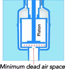 extra spaces and gaps, reducing the dead air space between the tip cone and the piston. This technology, similar to the UniCal® technology, has been developed in-house. The idea behind it was to reduce the air compression and enable the user to achieve precision in practical lab conditions.