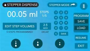 Just like the E-Burette, the E-Dispenser has a 4″ TFT touchscreen + stylus, making setting volumes and modes intuitive. - High-Precision Motor